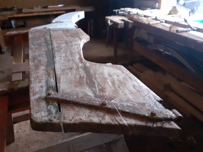 Bemærk sprækken i midten af roret, hvor tørken har 'mindsket' træet i bredden...
